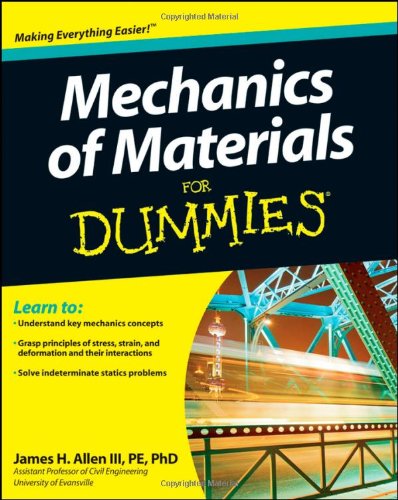 Tracking a typical undergraduate course, Mechanics of Materials For Dummies gives you a thorough introduction to this foundational subject. You'll get clear, plain-English explanations of all the topics covered, including principles of equilibrium, geometric compatibility, and material behavior; stress and its relation to force and movement; strain and its relation to displacement; elasticity and plasticity; fatigue and fracture; failure modes; application to simple engineering structures, and more.